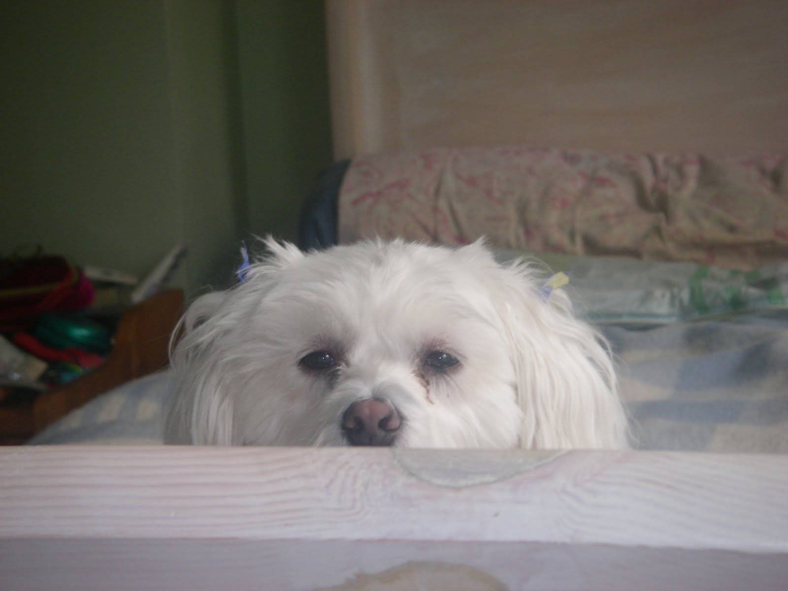 My dog absolutely loves chocolate. Shortly before christmas, she snuck into my parents' room, found a wrapped box of mint chocolates, tore the wrapping off, chewed up the cardboard box, tore the plastic cover off the chocolate, and proceded to eat all the chocolate out of one of the compartments! She is such a little sneaky twit! Besides chocolate, she loves to bark at nothing. in the middle of the night. It was New Years and she woke me up barking at 3 in the morning, and then again at 5. And when she barks, it can start sounding normal, and then it sounds like her voice cracked, and it goes high pitched. I remember another time she started howling with the ball in her mouth, which muffled the sound greatly. She can be very annoying sometimes, but I suppose she makes a good watch dog.